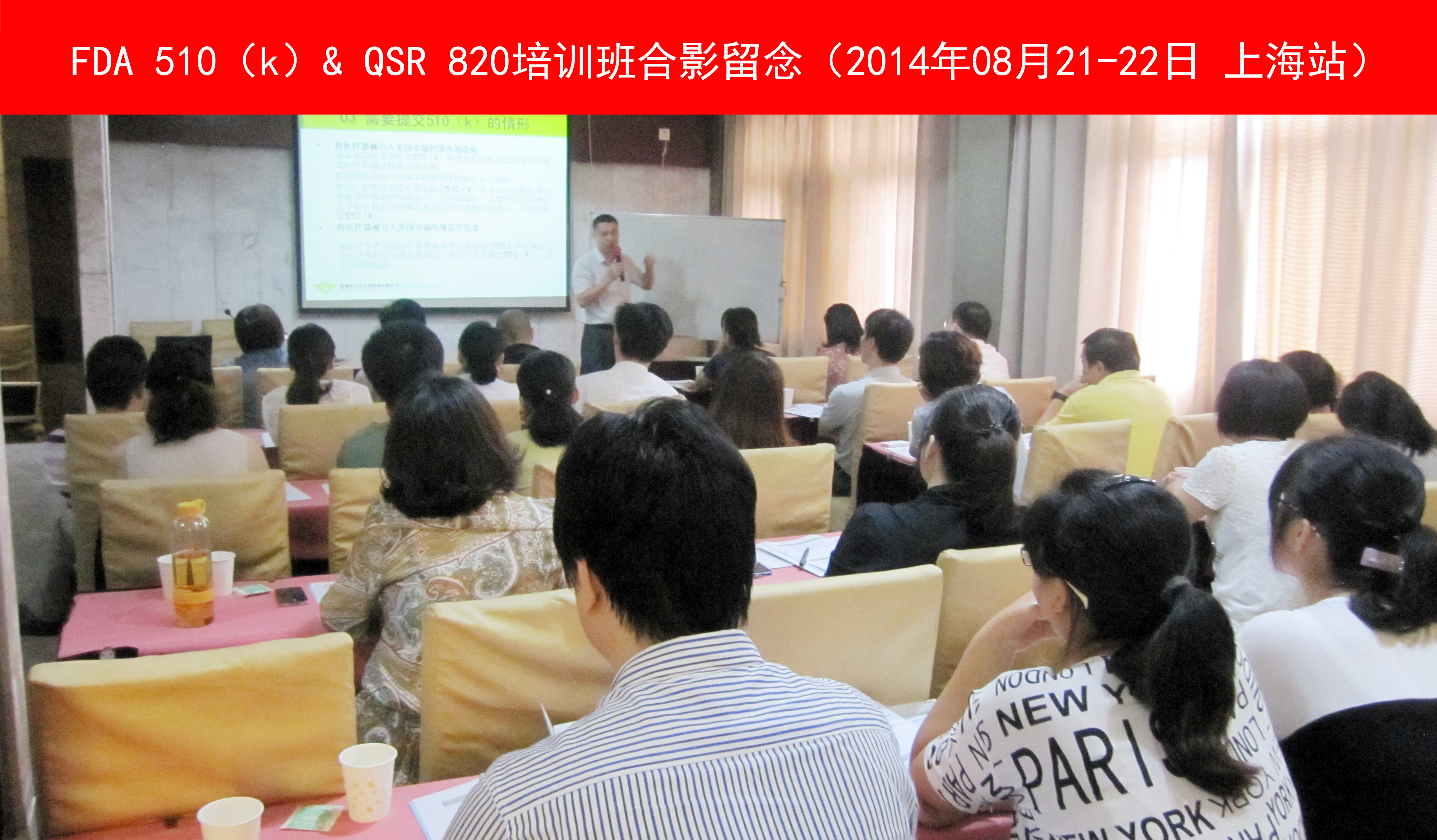 8月21日-22日,由中国医药行业协会主办、深圳卓远天成咨询公司协办的“美国FDA510(K)以及QSR820培训”在上海杨浦区华晶宾馆举行。培训讲师由深圳卓远天成咨询公司高级顾问付宏涛先生担任。21日着重讲解了510(K)评审流程的变化及其企业的影响;22日,针对QSR820的四大要点,付老师结合他多年的企业辅导实践和陪同FDA审厂的经历,着重介绍了企业应对FDA审厂过程中的常见错误和解决方案。