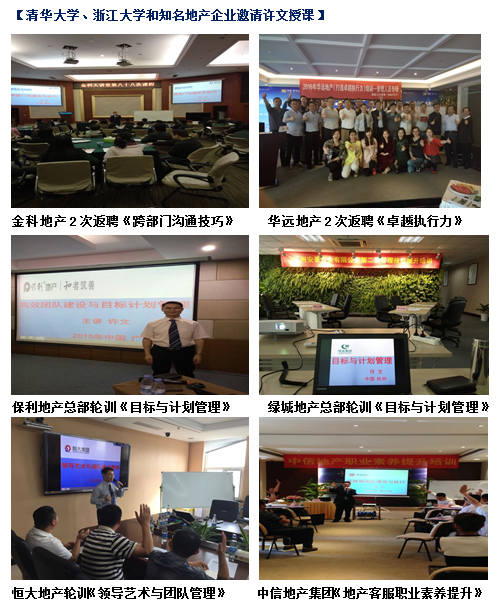 许老师:您好!您讲的中层干部管理提升课程受到各分公司老总的高度推崇!刚才与您的谈话也令我受益非浅!不胜感激!许老师博学多才,高屋建瓴,经验丰富,盼望着与许老师的下一次合作!