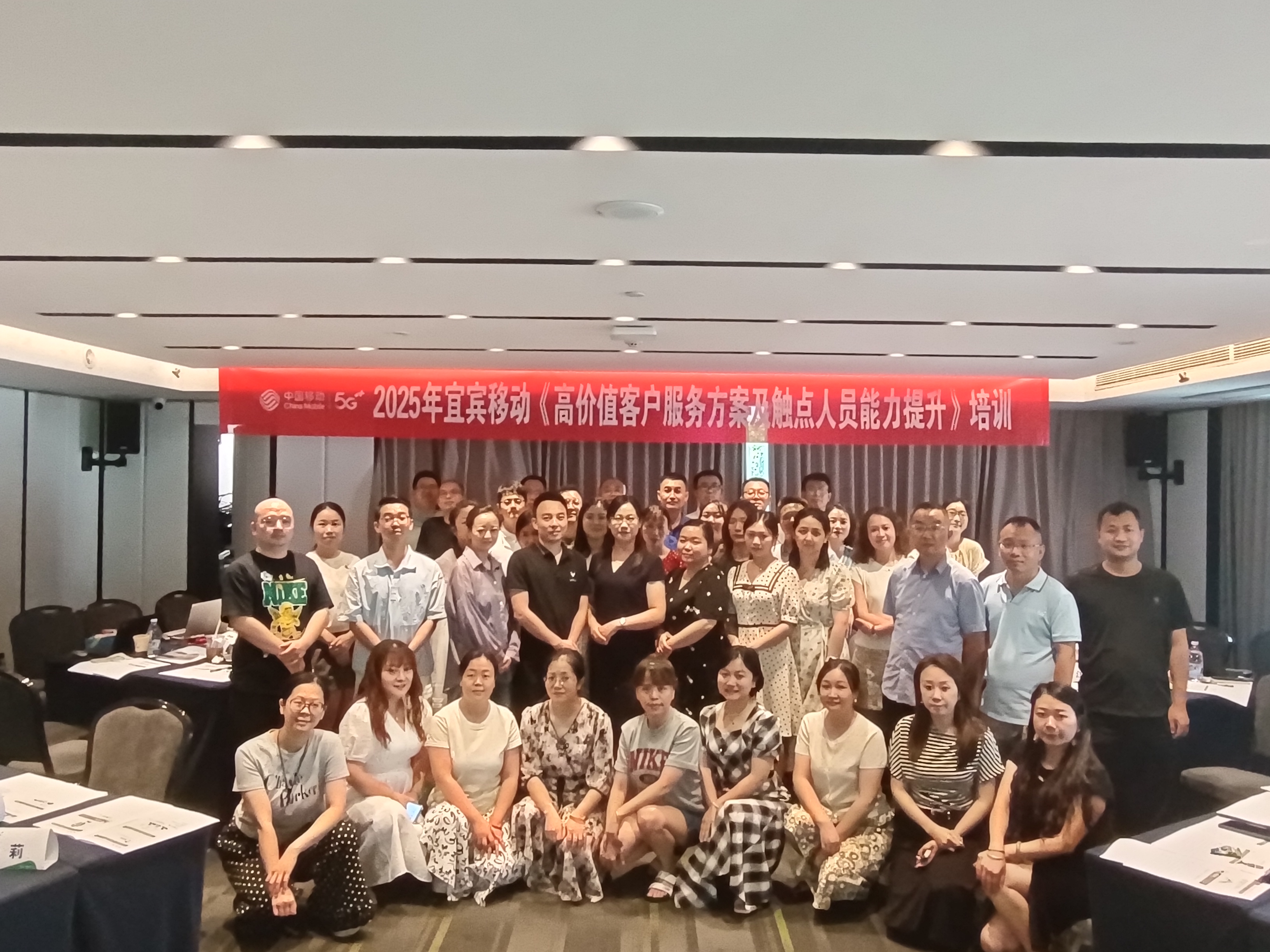 2025年7月份林瑜老师为宜宾移动客体部全体人员、客户总监等提供主题为《高价值客户服务方案及触点人员能力提升培训》的内训课程。