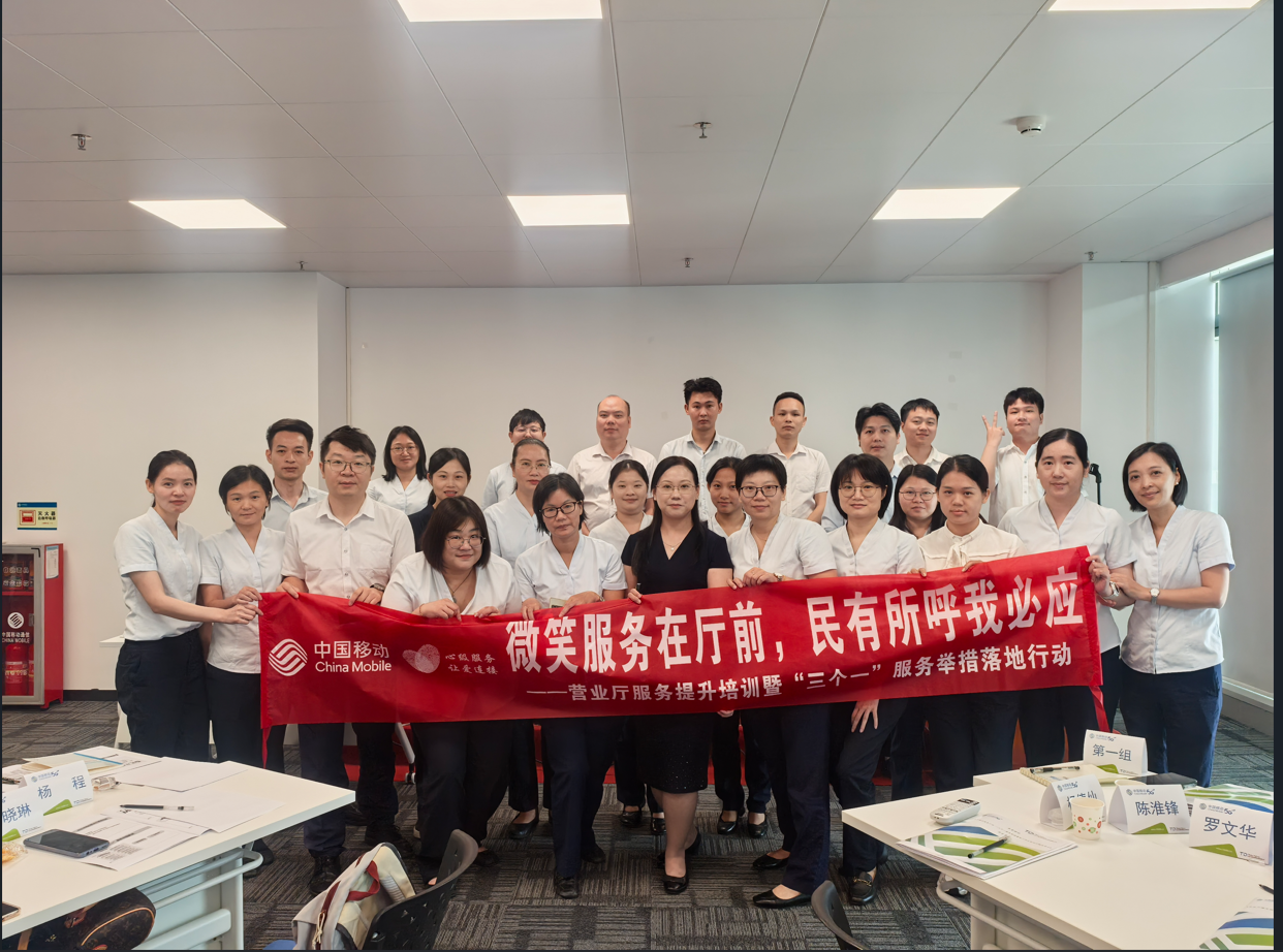 2025年9月份林瑜老师为东莞移动营业厅经理、店长提供主题为《营业厅服务提升培训暨“三个一”服务举措落地行动实战》的内训+实战的课程。