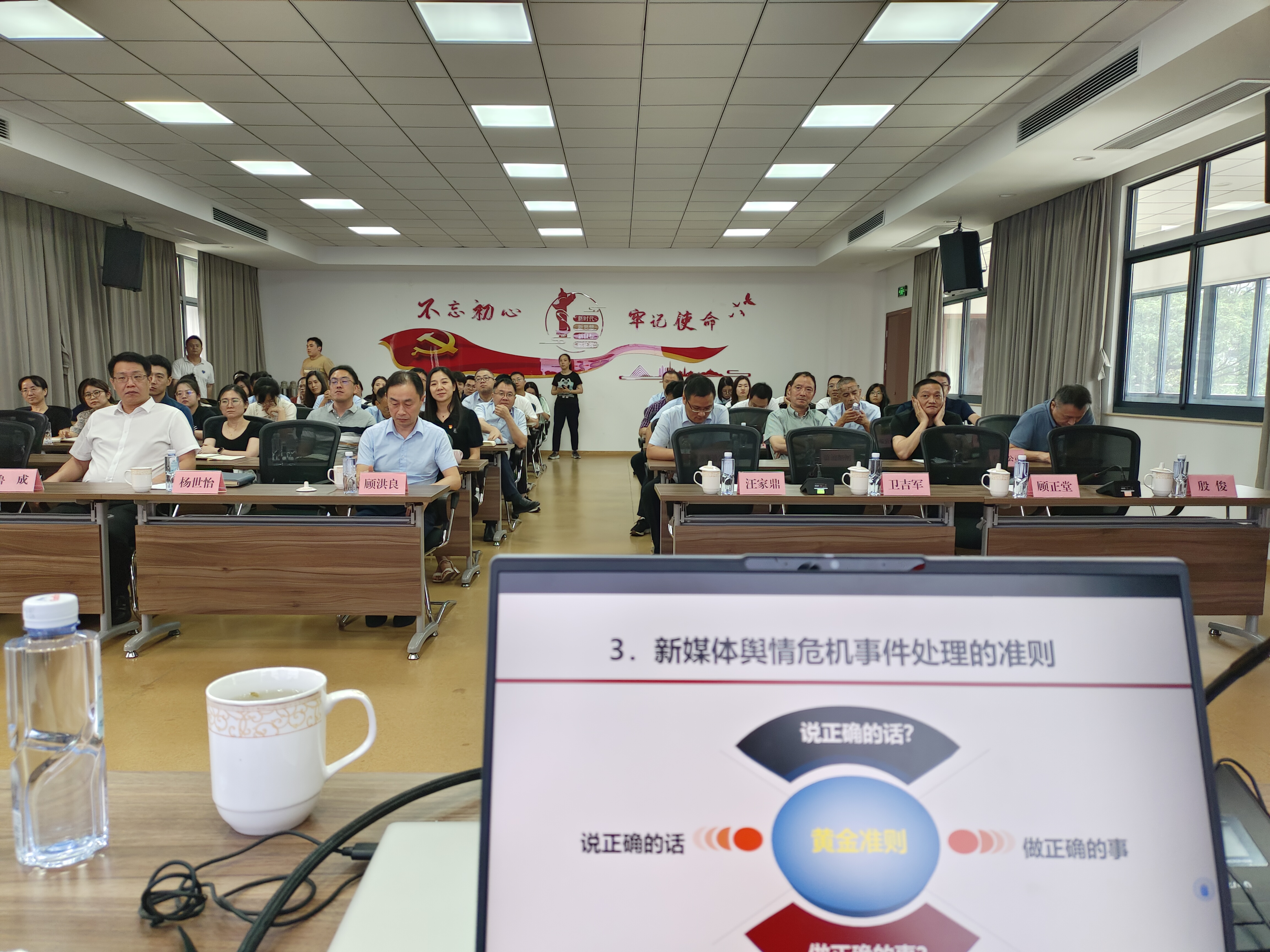 2024年7月18日,殷俊老师为常熟市环境保护科技有限公司及子公司管理层讲授《舆情管理与新媒体应对》课程。