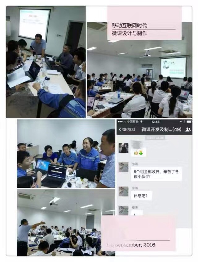 本次两天的时间,产出如此优秀的作品,离不开企业和机构在课前对学员需求全面的调研和访谈;离不开讲师全程紧扣学员需求,实施授课计划;也离不开课前及课中机构、助教老师对学员电脑软件安装的全程沟通、协助和确保……更重要的是,离不开学员对本次培训饱有的极大热情和全身心的投入:44位学员,44台电脑,在课程中无一落下全程跟上讲师的教学节奏;在第一天下午的微课脚本撰写过程中,所有学员更是自动自发的晚上也在家加班,精益求精,力求完美,为第二天的教学赢取了时间(其中最晚一组的递交时间是23:30);在正式开拍时,导演、演员、摄像、配音、文案、剪辑分工有序,各有专注;最后,当学员们看到自己在零基础的情况下,经由两天学习而制作出来的微课作品,欣慰和喜悦之情溢于言表!