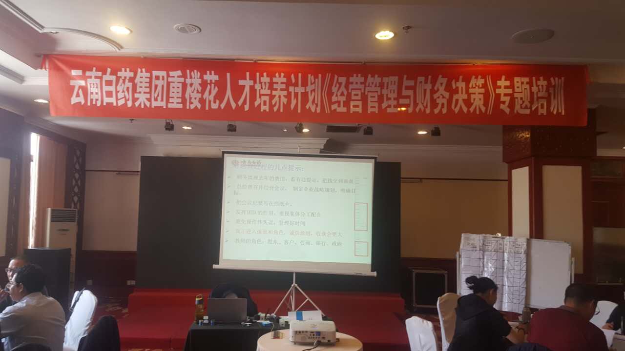 4月,王悦宇老师受邀为云南白药集团重楼花人才培养计划,讲授《经营管理与财务决策沙盘模拟》专题