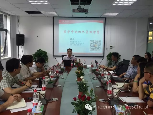 凤凰商学院戴蔚院长,应邀走进马上游科技股份有限公司(股票代码833158),为公司高管作《国学中的团队管理智慧》主题讲座。马上游科技股份有限公司成立于2010年,2015年成功上市,公司以移动互联网、物联网、云计算和大数据为核心技术,以“互联网+旅游目的地”为主营业务,是国内领先的智慧旅游解决方案和产品提供商。戴蔚院长将佛、儒、道三家的思想精华与企业管理实践有机结合,生动幽默、深入浅出的解读了企业团队组建、发展、转型、升级的智慧。