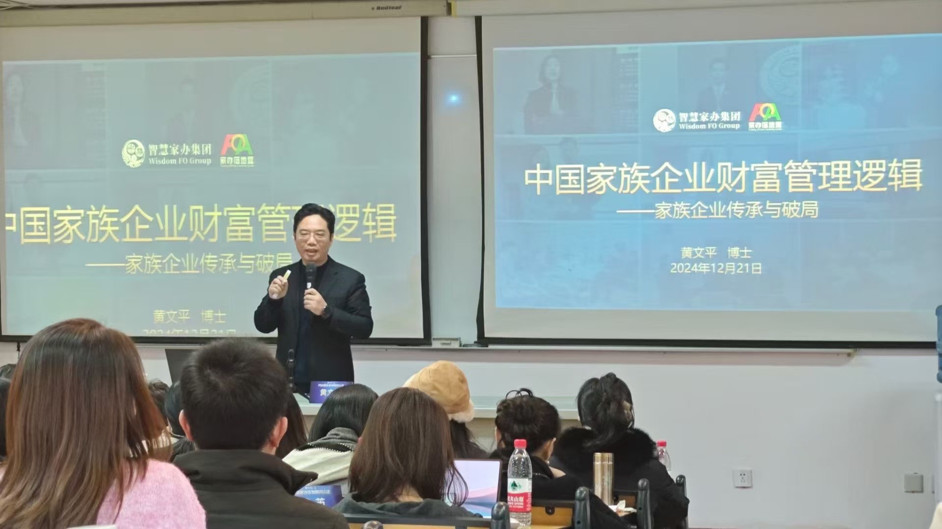 12月21日上午,公司创始人、企业传承辅导专家黄文平博士作为智慧家办集团董事、专家顾问,在上海财经大学为智慧家办集团-上海财经大学FOA家办咨询顾问认证训练营的120多位学员开展“家族企业传承与破局”专题授课。